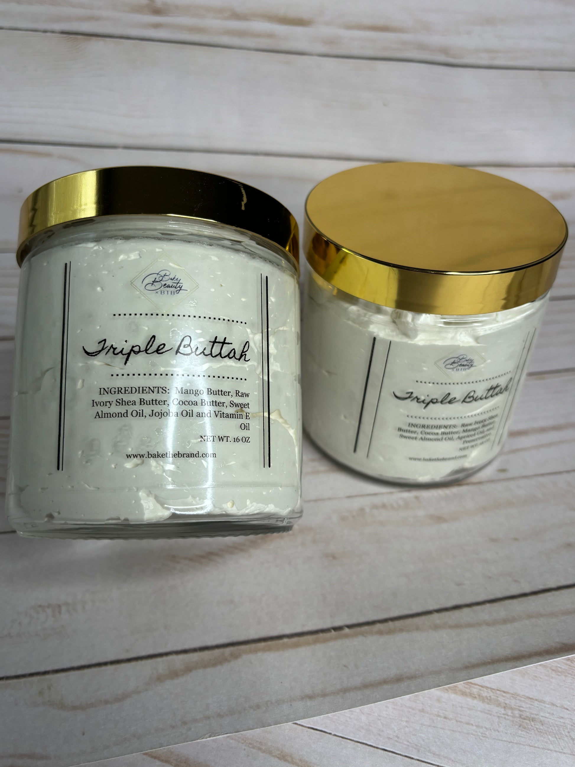 Indulge in the lavish pampering of our Triple Buttah, the ultimate solution to all your skin care woes. This organic product is specially formulated to provide your skin with the nourishment it craves, leaving you with soft and supple skin that's guaranteed to make heads turn.